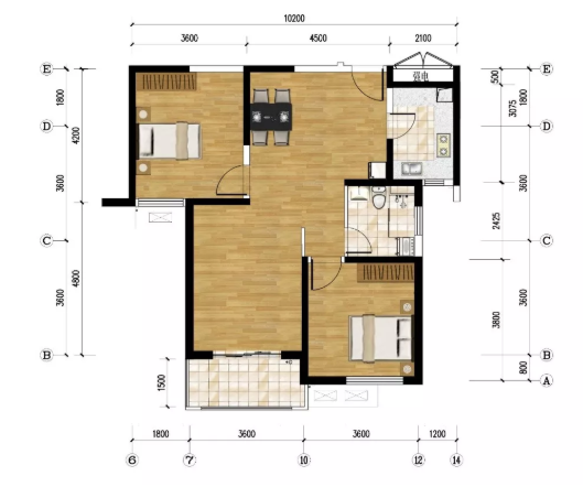 卧室配置:空调和基本家具,包括双人床、床头柜(或书桌)和衣柜等。