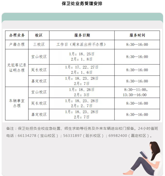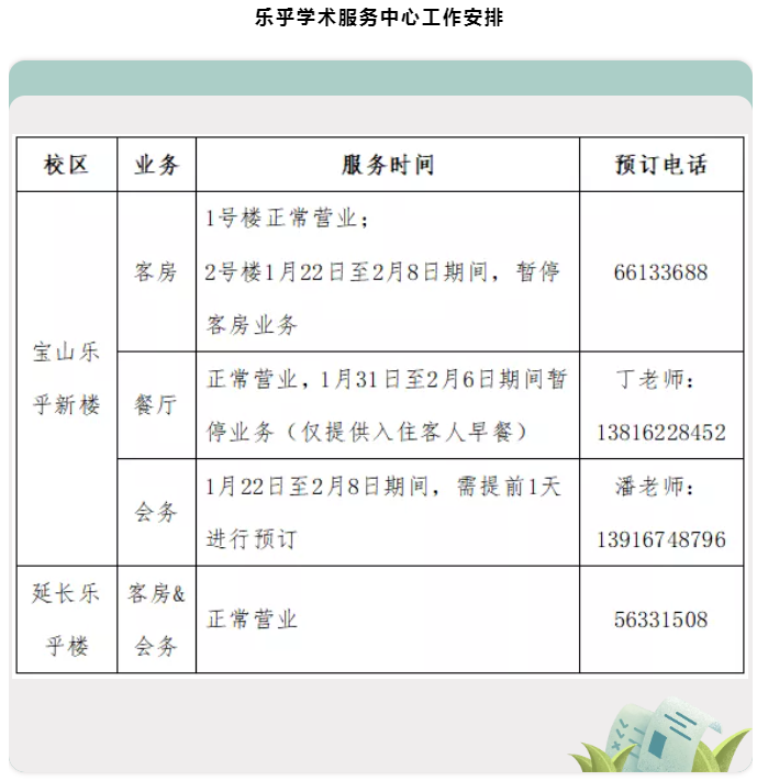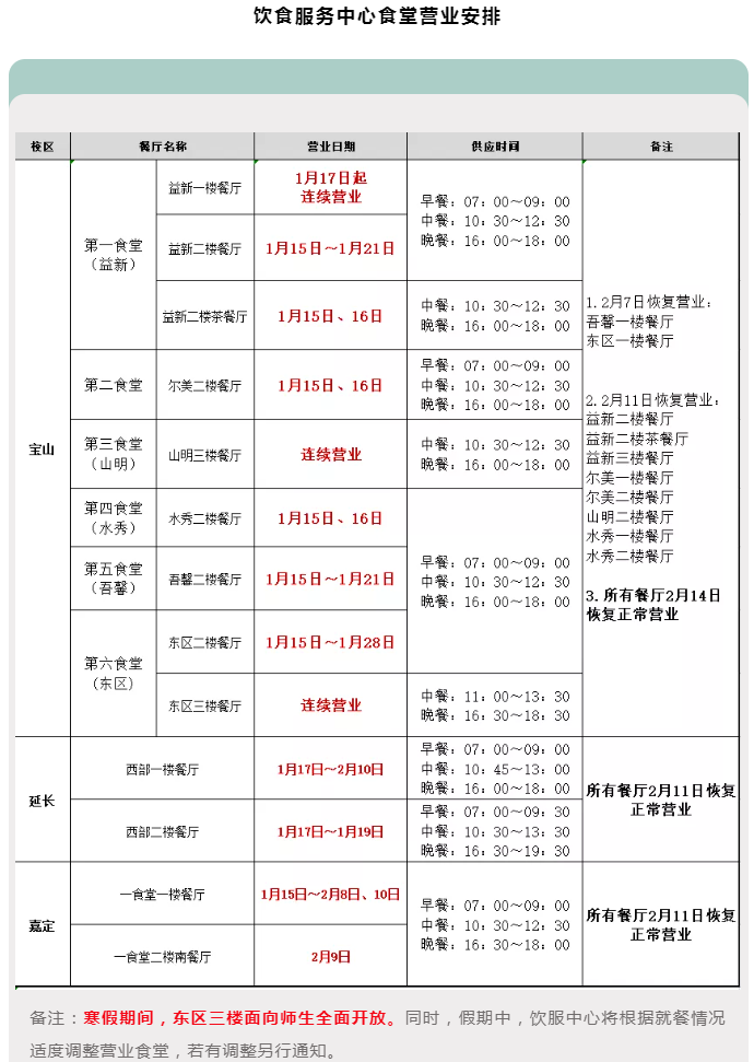 后勤保障部各单位2021-2022年度寒假期间工作安排