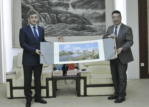 会谈结束后,在李伟、张恒龙和张丹华的陪同下,大使一行参观上合作组织公共外交研究院,他对哈萨克斯坦研究中心的发展表示肯定,并对年青学者提出殷切希望。
