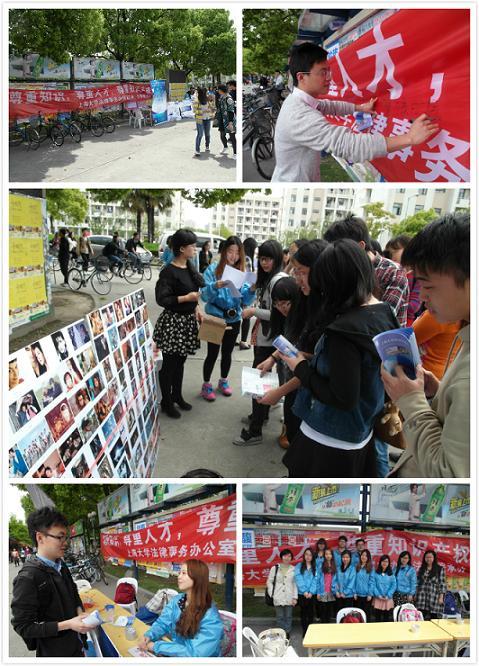 “世界知识产权日”旨在全世界范围内树立尊重知识、崇尚科学和保护知识产权的意识,营造鼓励知识创新和保护知识产权的法律环境。为普及知识产权法律知识,传播知识产权文化理念以及增强在校师生的法制观念,本次活动由学校法律事务办公室工作人员与我校知识产权学院研究生共12人组成专门的志愿者宣传团队。今年,世界知识产权日的主题是“电影——全球挚爱”,活动现场通过发放宣传册、法律咨询、展板宣传、横幅签名以及商标有奖竞猜等多种形式,使参与者了解什么是知识产权以及知识产权与电影的关系。在法律咨询的环节中,志愿者们不仅介绍了知识产权的重大典型案例,还针对上海自贸区建设可能涉及的知识产权保护、建立知识产权法院等热点问题向师生做了耐心详细的解答。
