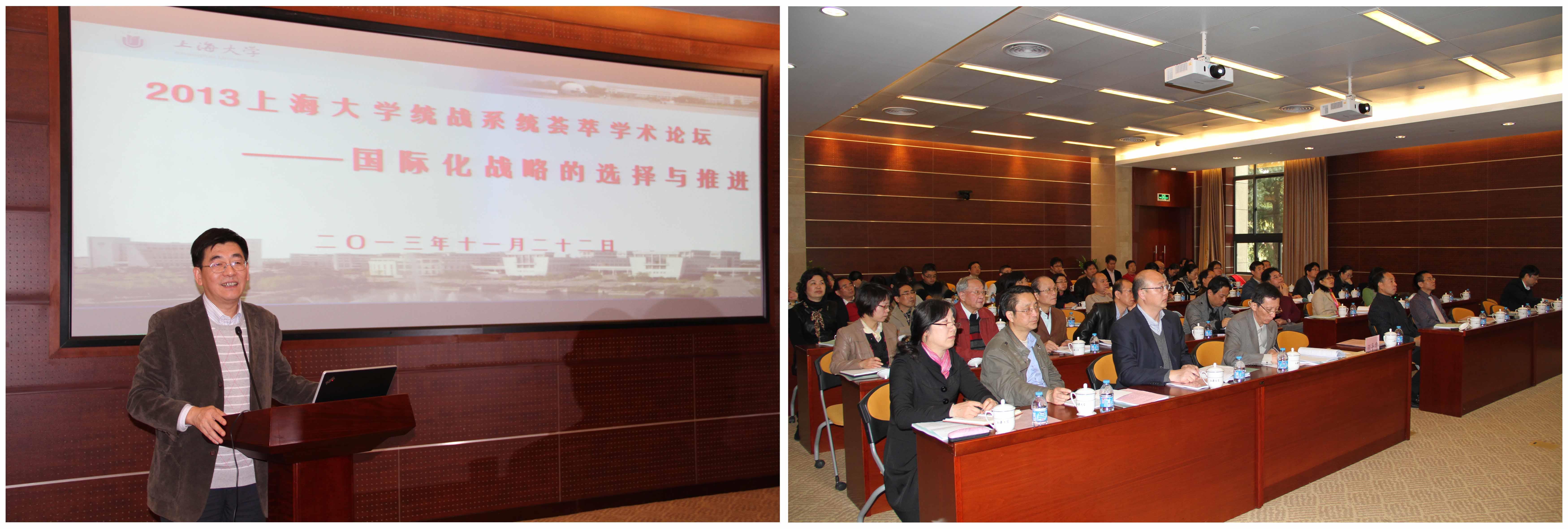 校党委书记于信汇做了讲话,他肯定了统战系统围绕学校发展工作进行研讨的做法,并希望大家可以拓展对国际化战略的思考,除了对国际化是学校发展目标实现的现实选择的研究外,多从当前国际背景出发,从国际化是高校发展的必要之路多加研究,不断推进我校国际化战略的实施。