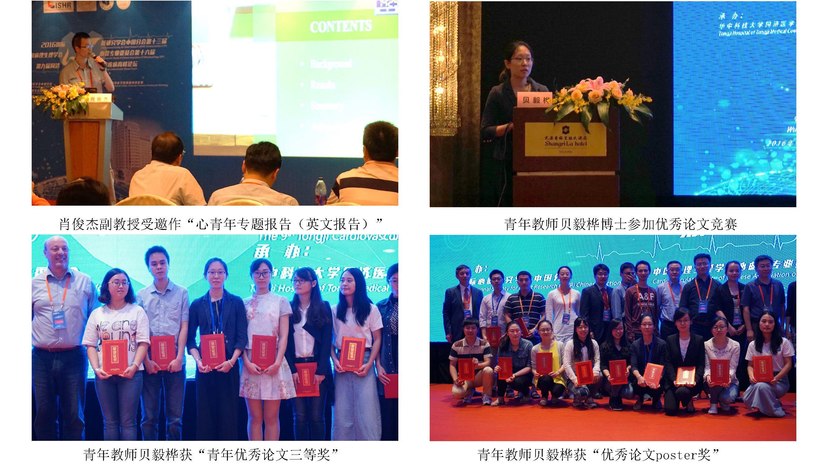 在此次会议上,肖俊杰副教授受邀作“心青年专题报告(英语报告)”。肖俊杰副教授向与会者详细地介绍了课题组与南京医科大学、哈佛大学等合作完成的关于微小RNA-433介导心脏纤维化的研究工作,该研究发现心脏纤维化增加微小RNA-433的表达,而微小RNA-433可以通过降低AZIN1、激活TGF-beta1、磷酸化Smad3,促进心脏纤维化的发生。此外,微小RNA-433也可以降低JNK1、磷酸化ERK和P38,从而促进心脏纤维化的发生。该研究已于近期发表在Theranostics杂志(Theranostics 2016; 6(12): 2068-2083. doi:10.7150/thno.15007),该杂志的影响因子为8.854。此外,我院青年教师贝毅桦博士获得“卢杨基金”青年优秀论文“三等奖”和“优秀论文Poster奖”。