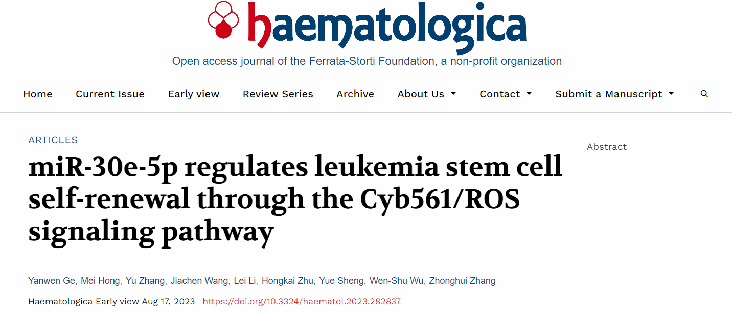 生命科学学院张忠辉教授课题组在Haematologica杂志发表研究论文